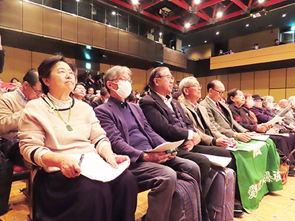 2025年11月26日 【2025年11月27日配信】禁止条約批准求め345万筆/被団協と原水協・原水禁/非核三原則見直しに抗議〈写真〉100人以上の被爆者と被爆二世が全国各地から参加した(11月21日、都内 被団協署名共同提出集会)