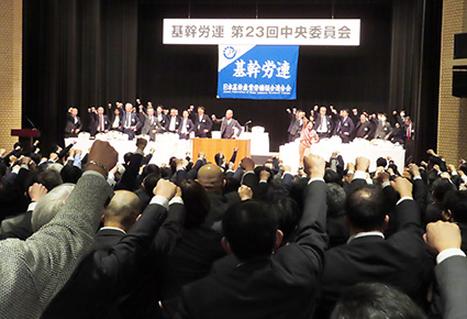 2026年2月10日 【2026年2月10日配信】「期待される役割果たそう」/基幹労連中央委/賃金格差是正求める発言続く〈写真〉基幹労連の津村正男委員長は「物価を上回る賃金改善を継続させる踏ん張りどころ」と奮闘を呼びかけた(2月4日、都内)